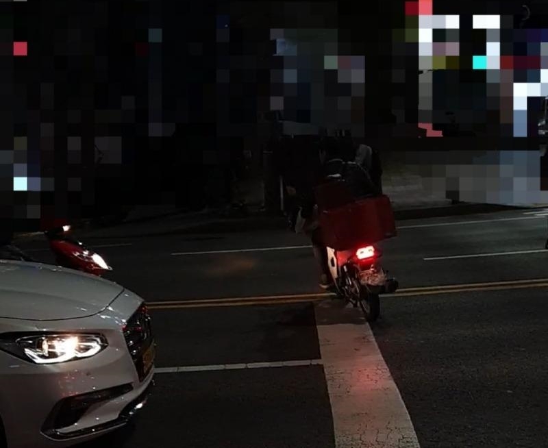 한 오토바이가 제 눈 앞에 목격됩니다.